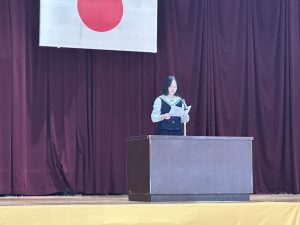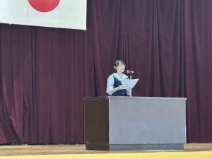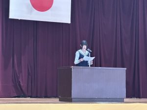 3年生からは2名が出場しました。1人は「時間の使い方」をテーマに、部活動と学業の両立を通して感じた時間の大切さを語り、もう1人は「SNSと私」と題して、自身の経験をもとに、スマートフォンやSNSとの向き合い方を考えさせる内容を発表しました。