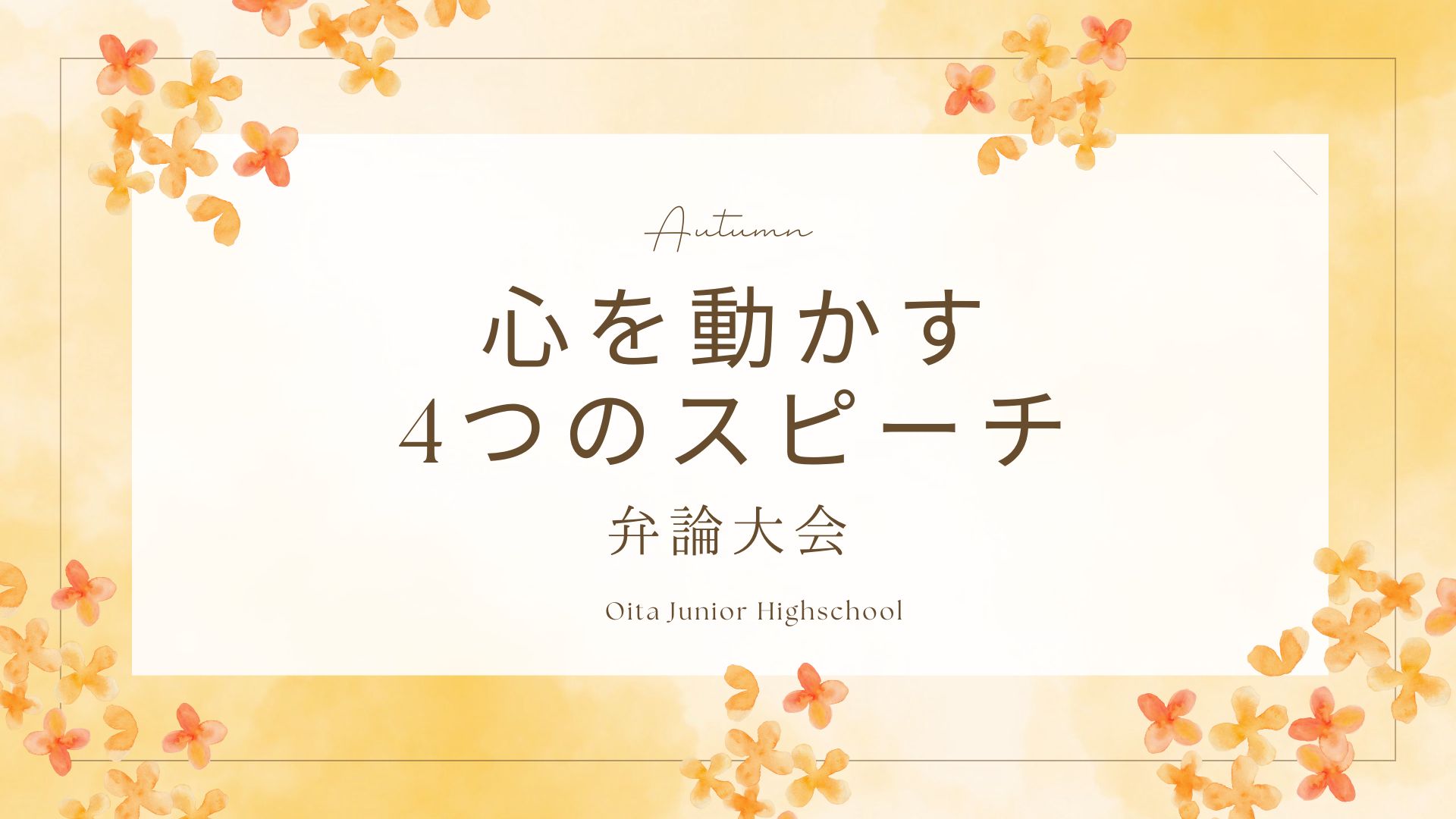 10月21日大分中学校弁論大会が行われました。各学年から選ばれた4名の弁士が、日頃の考えや経験をもとに、自身の思いを堂々と発表しました。