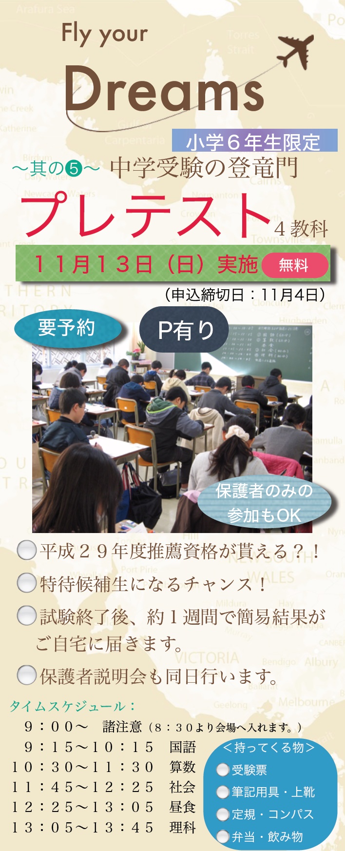 4科プレテストのお知らせ